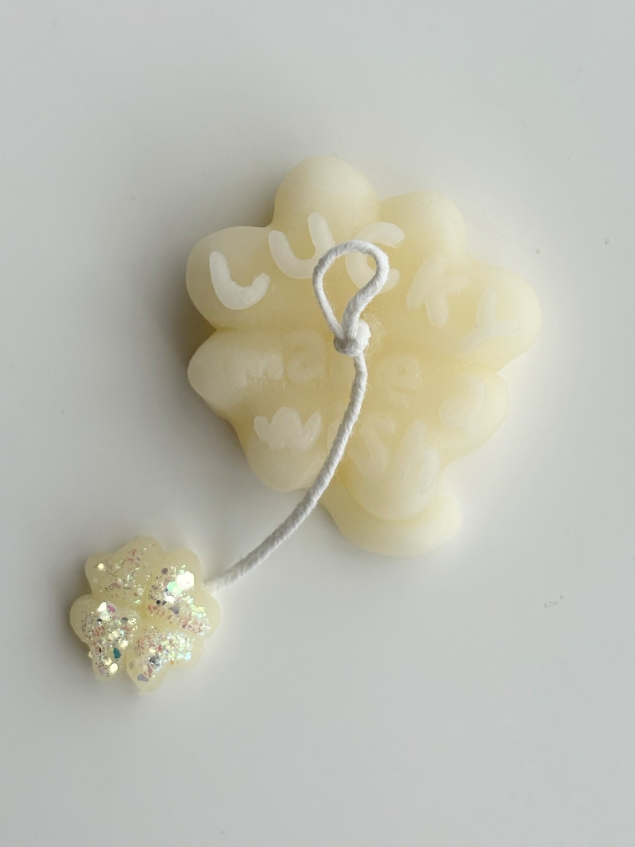 芯の先にキラキラなミニワックスチャームがついているので、火を灯す際はカットして、チャームはワックスメルトやお部屋の芳香剤としてお使いください。